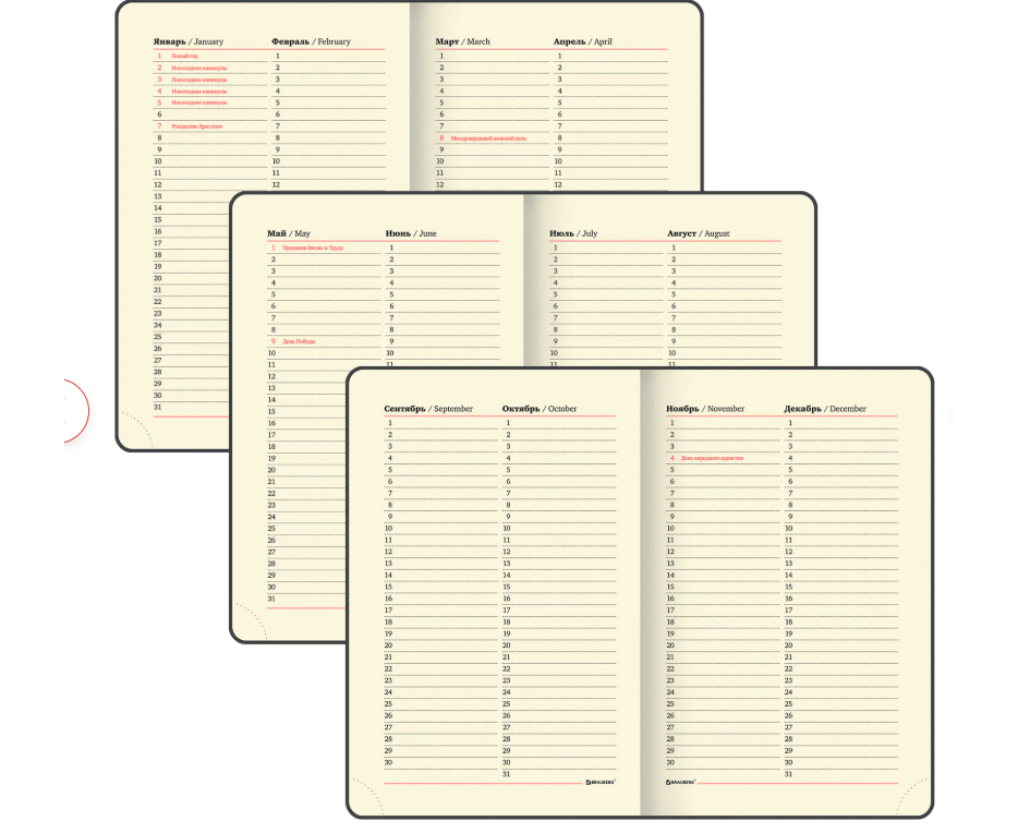 Внутренний блок включает 160 листов тонированной бумаги плотностью 70 г/м2. Каждая страничка имеет перфорированный угол. Благодаря малому формату А6 (100х150 мм) ежедневник удобно использовать как в офисе, так и на выездных деловых встречах. Мягкая (интегральная) обложка стилизована под гладкую кожу. Подходит для горячего тиснения. Снабжен резинкой-фиксатором, благодаря чему ежедневник не откроется в сумочке или портфеле и листы не помнутся.