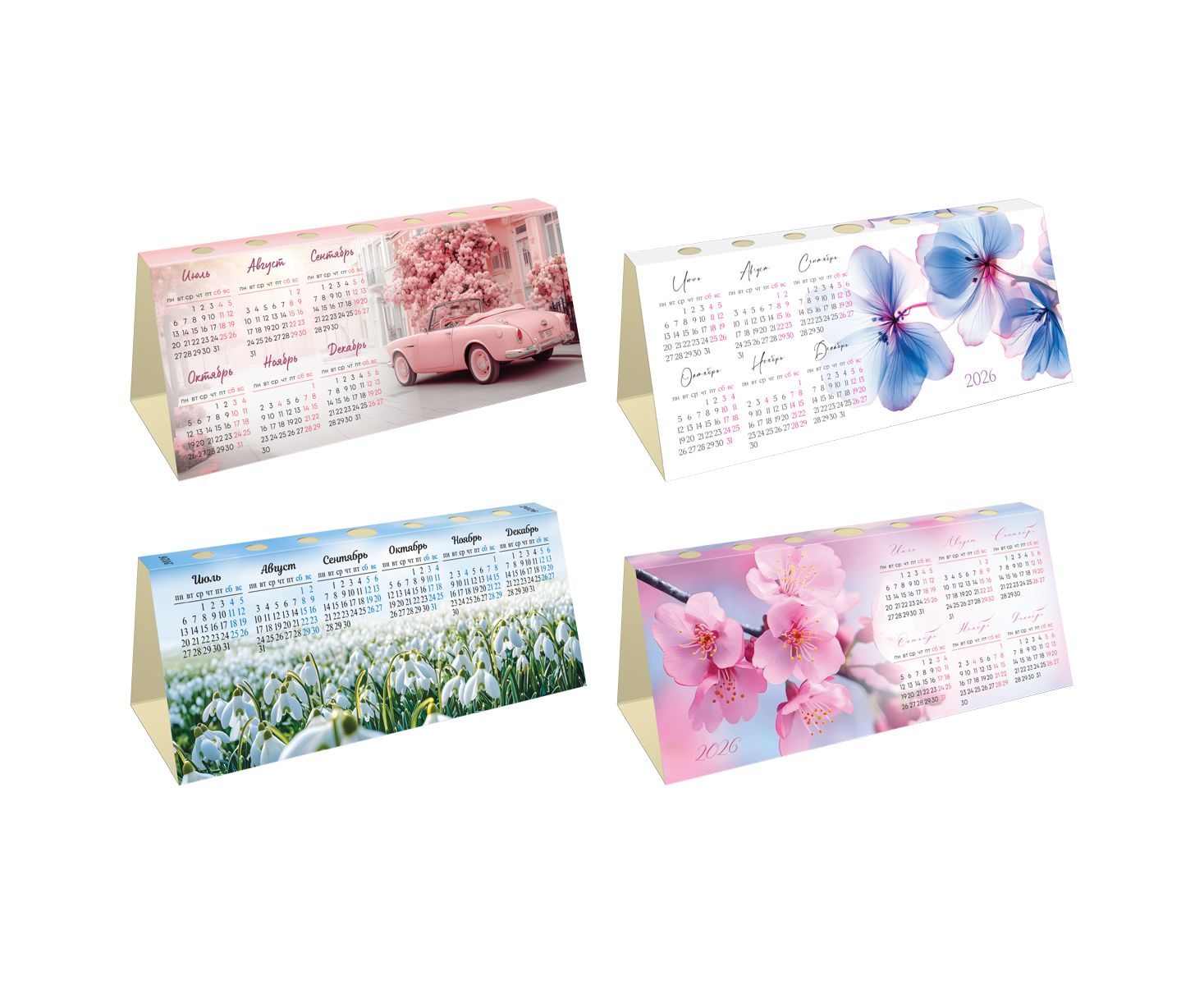 Настольный календарь-домик — незаменимая вещь на рабочем столе делового человека. Инструмент для планирования станет отличным помощником для офиса. Размер горизонтального календаря — 210*85 мм. Календарь поместится на рабочий стол или полку. Изделие изготовлено из чистоцеллюлозного мелованного картона 300 г/м² с полноцветной печатью. Высечки можно использовать как подставку для ручек и карандашей.