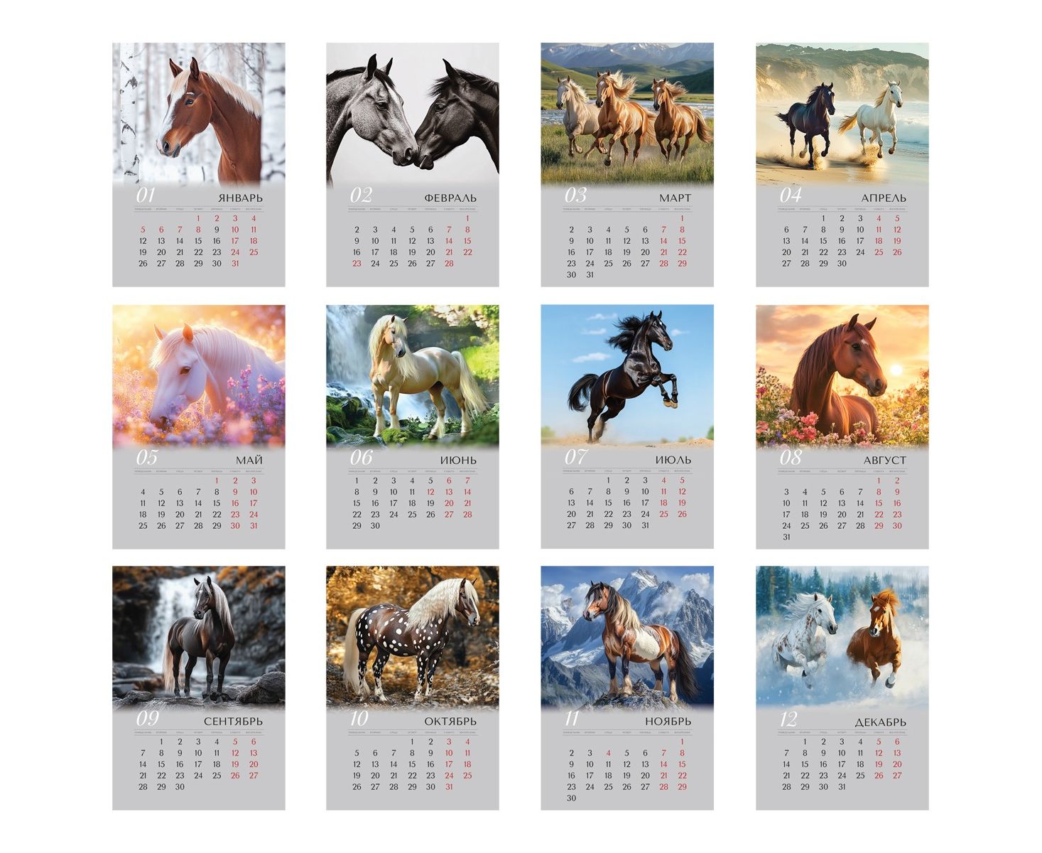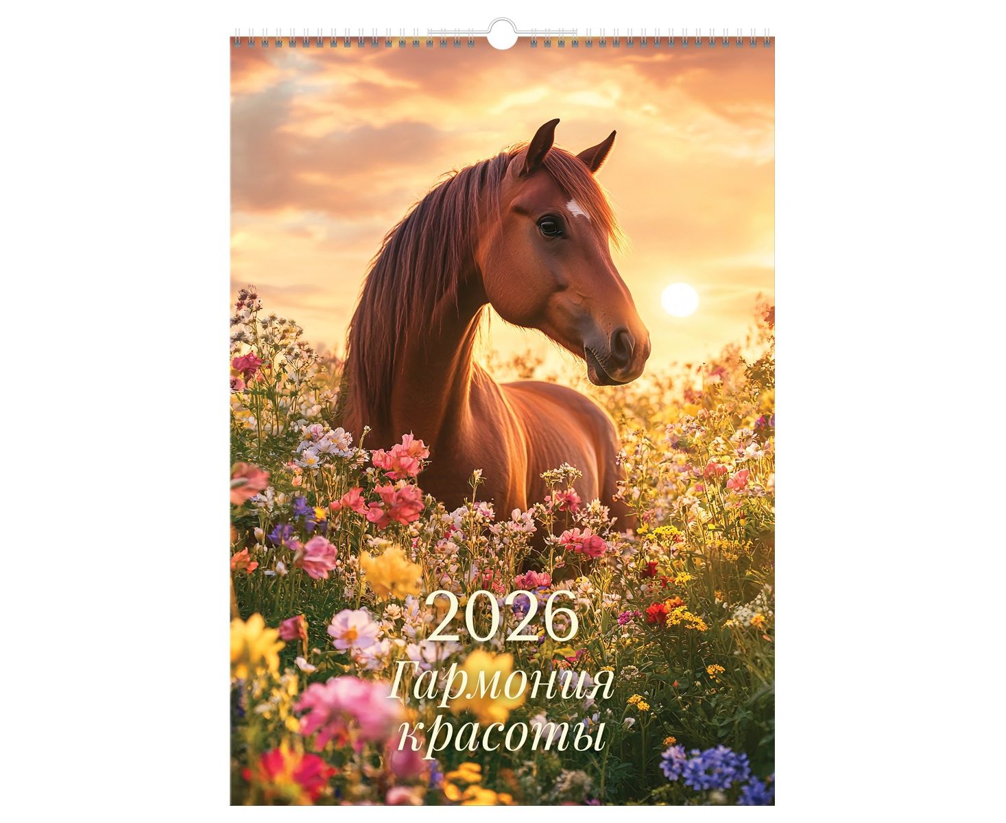 Настенный перекидной календарь на гребне BG «Лошади» на 2026 год — это уникальное сочетание изысканного дизайна и практичной функциональности.