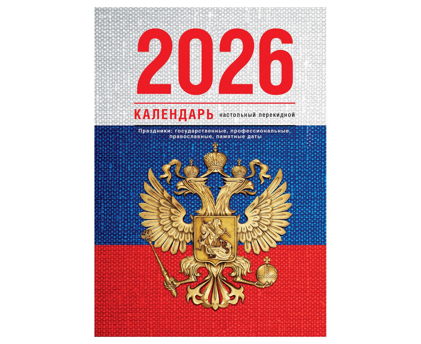 Календарь настольный перекидной, 160л, блок газетный 1 краска, 2026 год (4 цвета) «Флаг»