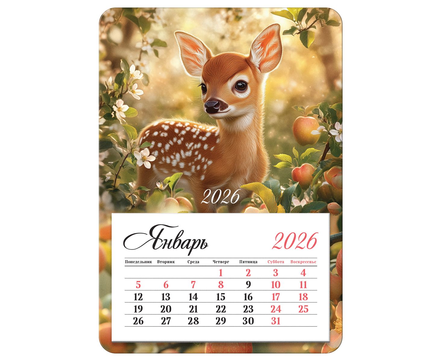 Календарь отрывной на магните, 95*135 мм склейка BG "Оленёнок", 2026г.