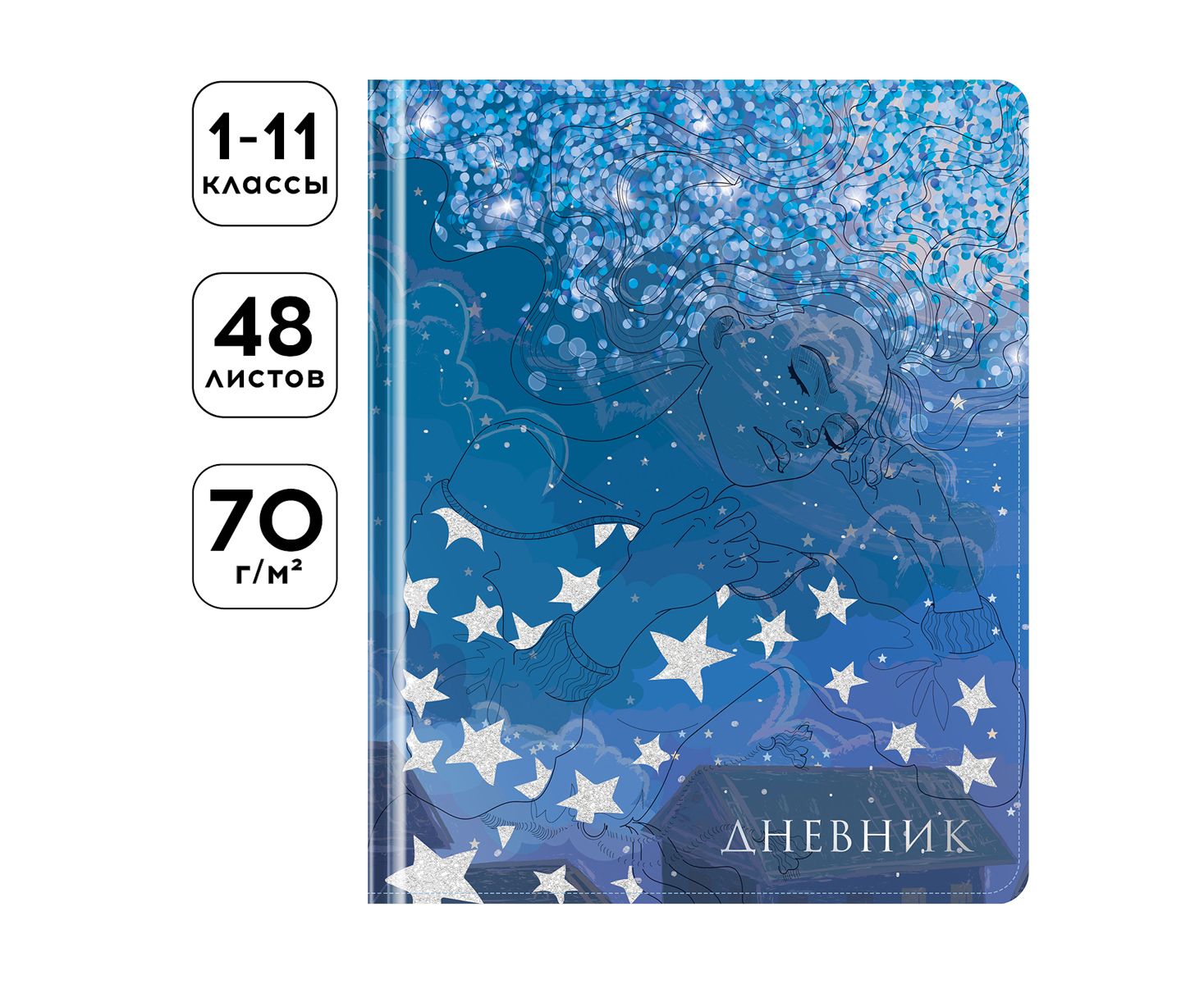 Дневник 1-11 кл. 48л. (твердый) Greenwich Line "Serenity", иск. кожа, УФ-печать, выб. отделка глиттером, тисн. фольгой, тон. блок, ляссе