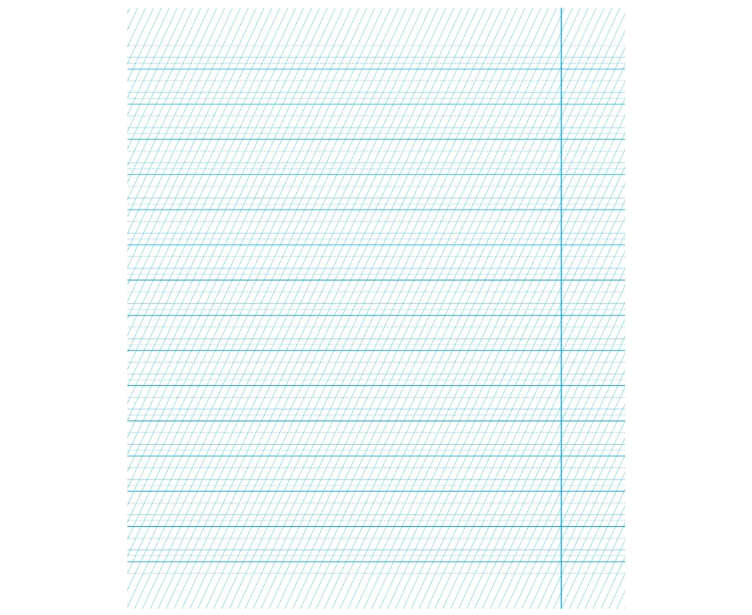 Каждая буква состоит из разных элементов. Рабочая тетрадь разлинована в частую косую линейку - ведь сначала надо научиться красиво рисовать элементы, а потом из них соединять уже буквы. Чтобы им было легко скрепляться друг с другом в слова, нужно доводить последний штрих каждой буквы до середины рабочей строки. Высота строки составляет 4 мм.
