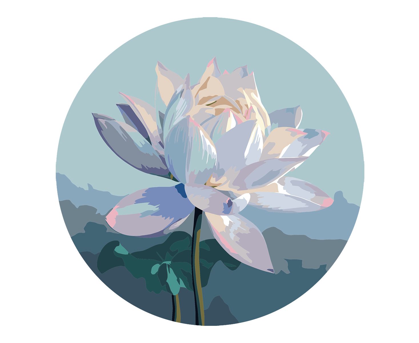 Картина по номерам на фигурном холсте ТРИ СОВЫ "Цветок лотоса", форма круг, с акриловыми красками и кистями