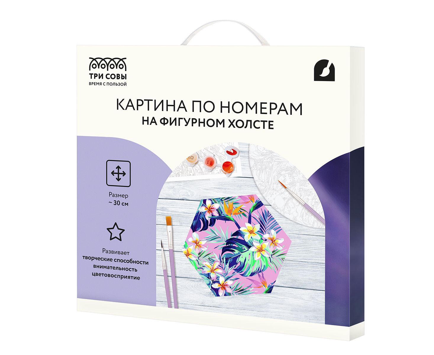 Картина по номерам на фигурном холсте «Тропический сад» бренда «ТРИ СОВЫ» поможет раскрыть творческие способности.