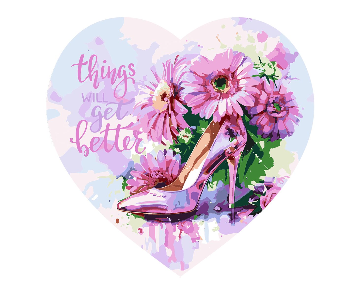 Картина по номерам на фигурном холсте ТРИ СОВЫ "Женские радости", форма сердце, с акриловыми красками и кистями