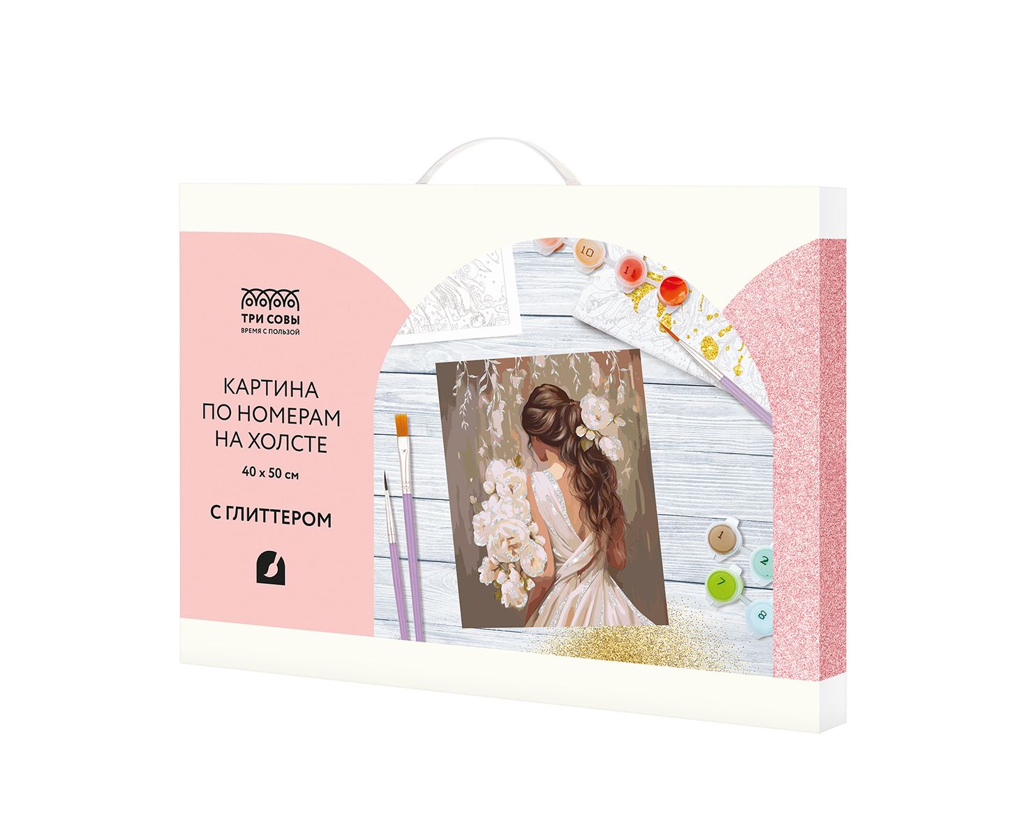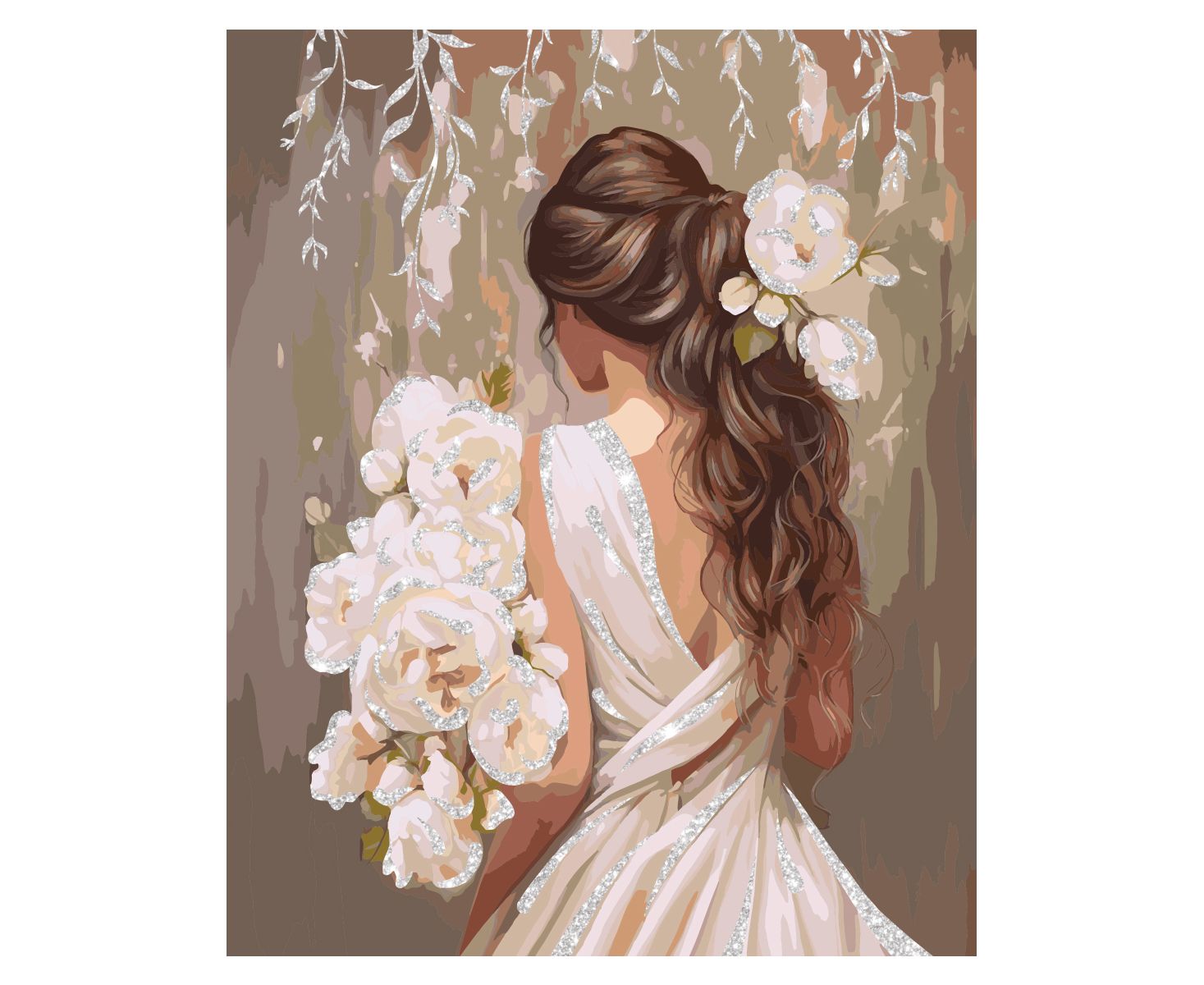 Картина по номерам на холсте с глиттером ТРИ СОВЫ "Невеста", 40*50, с акриловыми красками и кистями