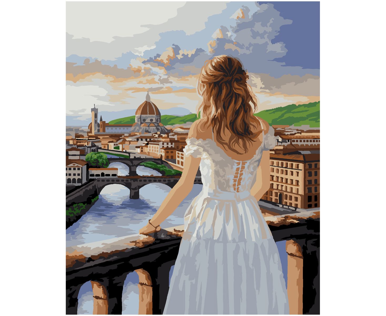 Картина по номерам на холсте ТРИ СОВЫ "Девушка во Флоренции", 40*50, с акриловыми красками и кистями