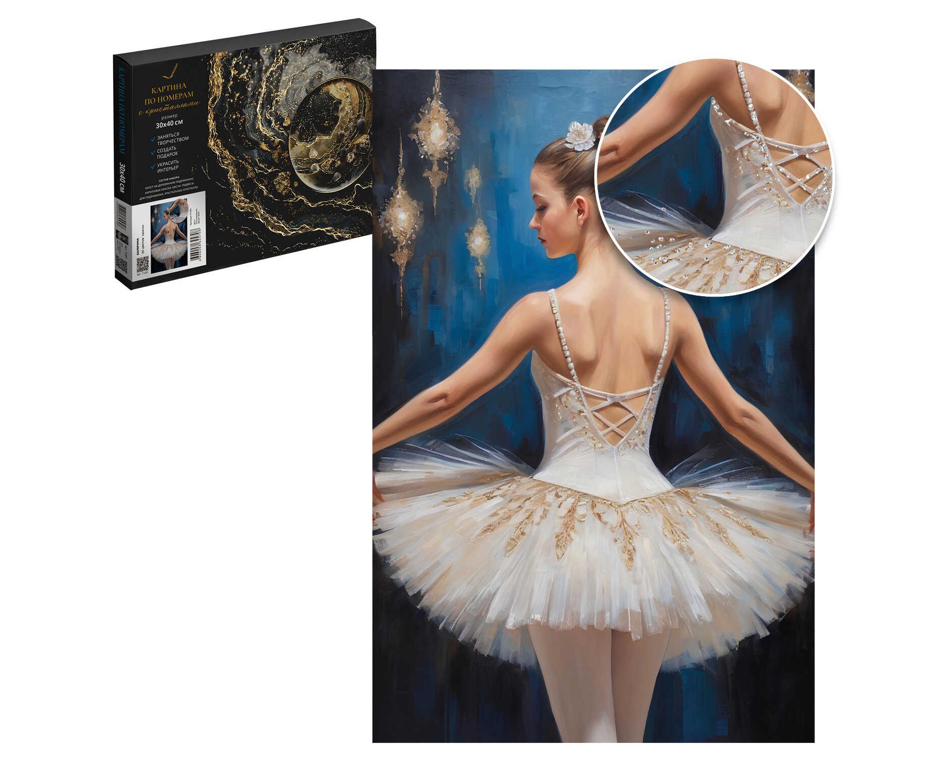 Набор для творчества Картина по номерам с кристаллами БАЛЕРИНА, размер: 30х40 см, (20 цвета (-ов), холст на деревянном подрамнике с напечатанной схемой рисунка, краски акриловые на водной основе (упакованы в вакуумную упаковку), кристаллы, клей для кристаллов, кисти художественные с ворсом из нейлона – 4 шт., лак, пакет на zip-молнии, подвесы для подрамника, контрольный лист с нанесенной схемой в комплекте, картонная коробка с ручкой)