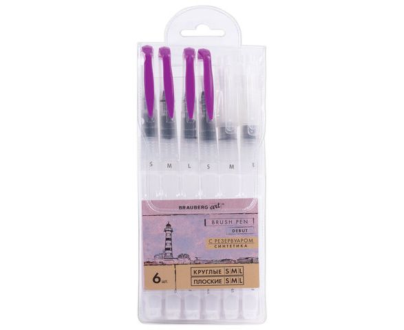 Кисти художественные с резервуаром для воды синтетика набор 6 шт, BRAUBERG ART DEBUT, 200965