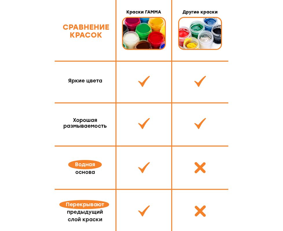 Набор гуаши ГАММА серии «Оранжевое солнце» – это уникальное сочетание цветов для волшебного творчества. Гуашь фасуется в пластиковые герметичные баночки с завинчивающейся крышкой по 20 мл. В наборе 12 цветов: белый, желтый, оранжевый, розовый, алый, коричневый, зеленый, синий, фиолетовый, черный, серебряный, золотой.