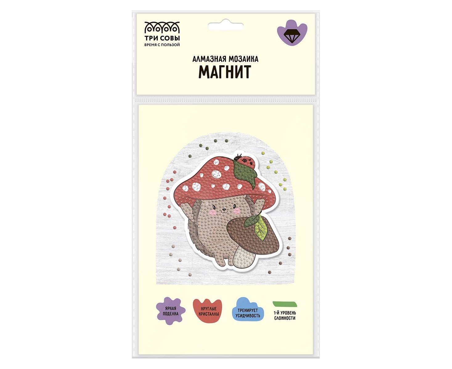 Алмазная мозаика, магнит ТРИ СОВЫ "Ежик", пакет с европодвесом