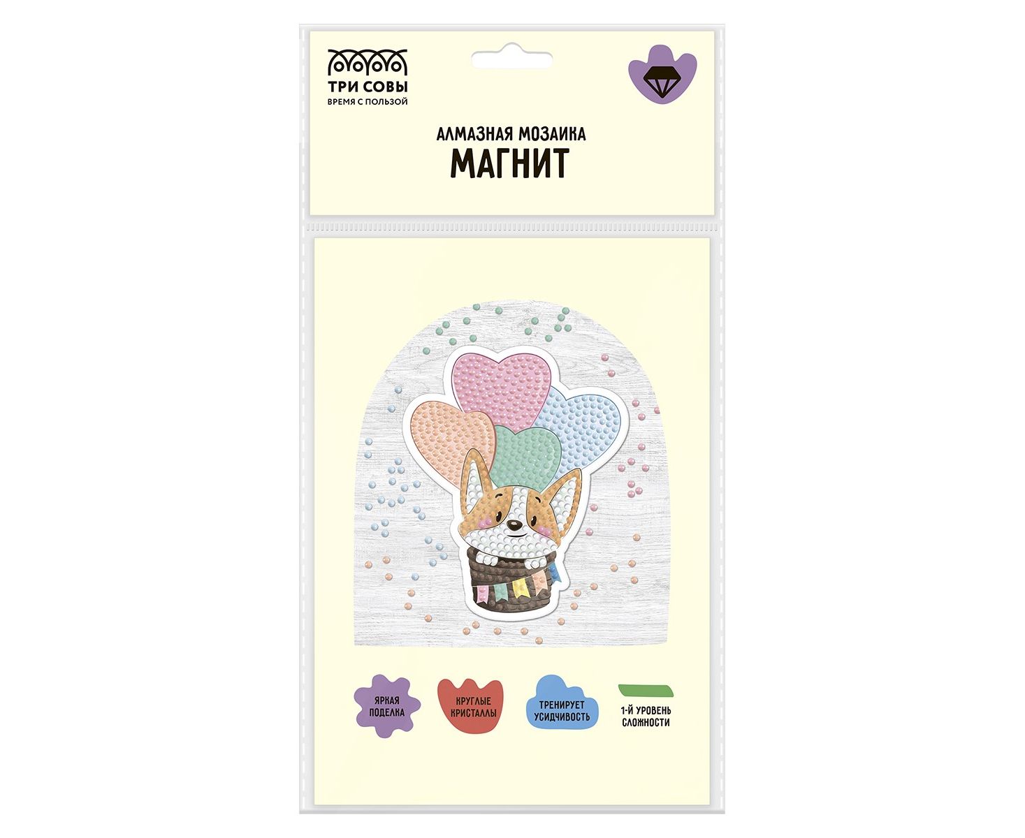 Создание магнита из алмазной мозаики «ТРИ СОВЫ» – увлекательное занятие, которое развивает мелкую моторику, усидчивость и цветовосприятие ребенка.