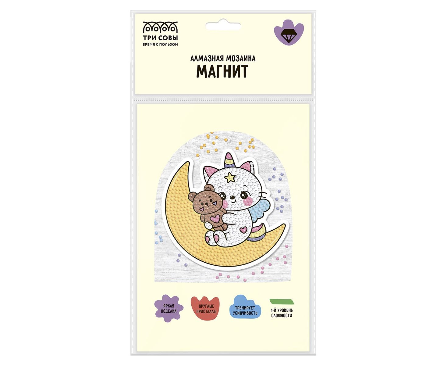 Алмазная мозаика, магнит ТРИ СОВЫ "Котофея", пакет с европодвесом