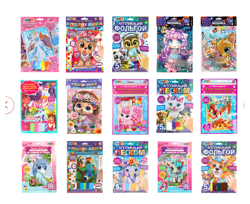 Аппликация АССОРТИ 15 видов, 17х23см, перья, эва, фольга, мозаика, на картоне, МУЛЬТИ АРТ, 5933