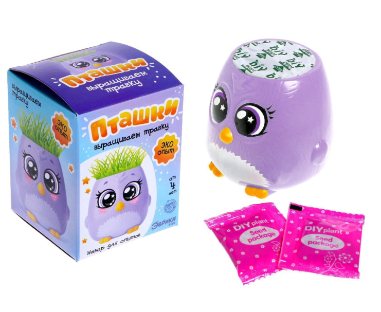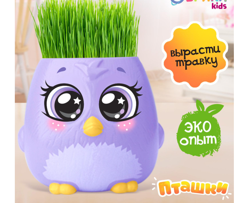 Набор для опытов, для детей «Пташки, выращиваем травку», растение в фиолетовом горшочке