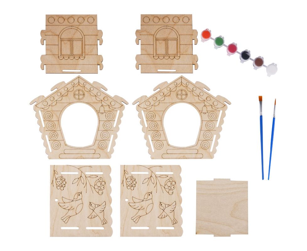 Набор для творчества 3D из дерева Мульти-Пульти "Кормушка - домик" с акриловыми красками и кистями
