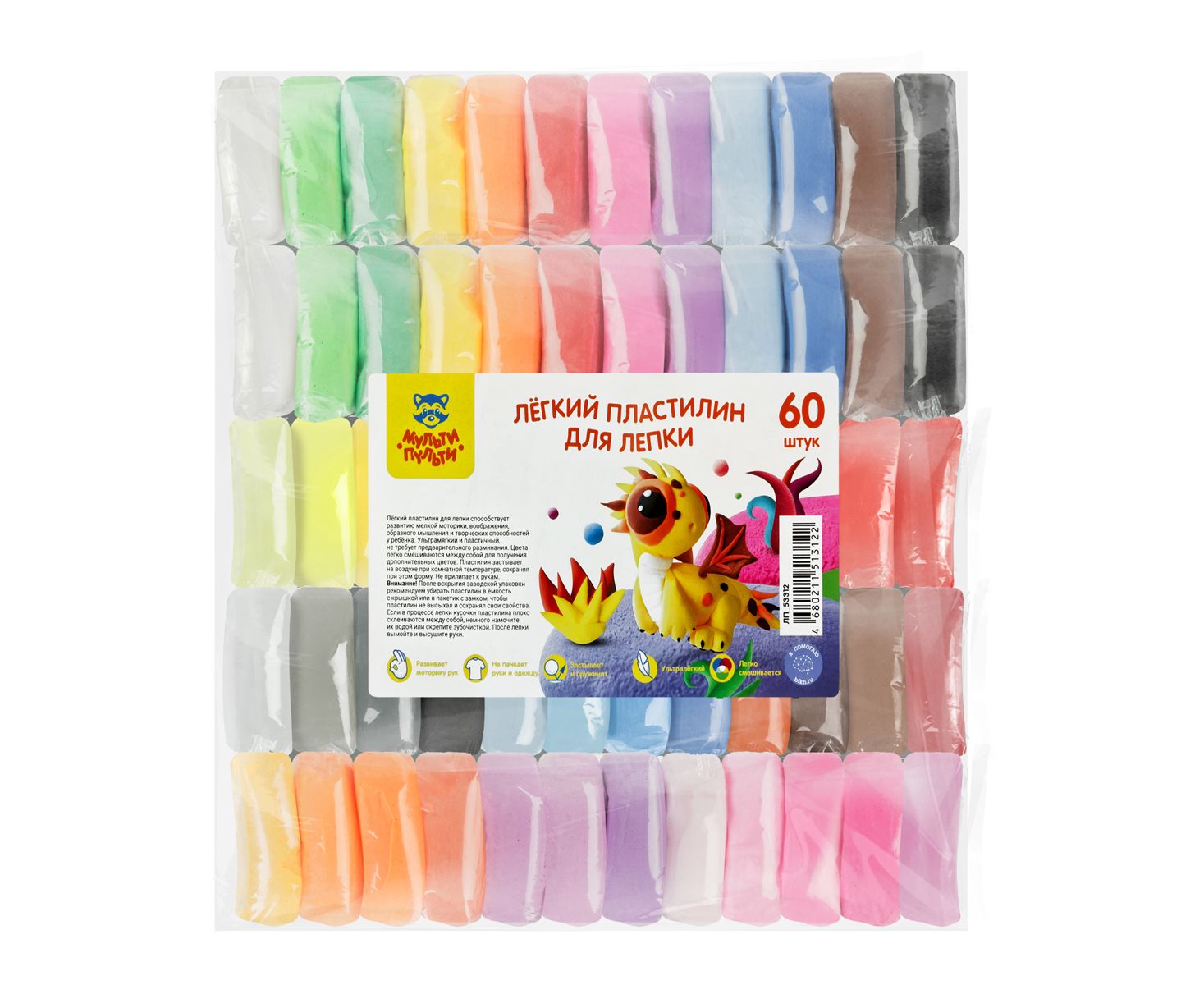 Легкий пластилин для лепки Мульти-Пульти, 60шт., 600г, прозрачный пакет