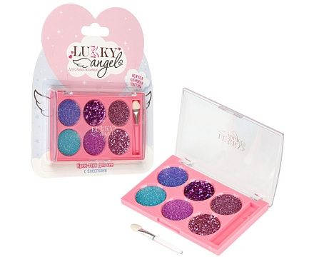 Lukky Angel крем-тени для век с блёстками, с аппликатором, 6 цв.(фиолетовый, пурпурный, фуксия, бирюзовый, розовый, светло-розовый), 6г,блистер.