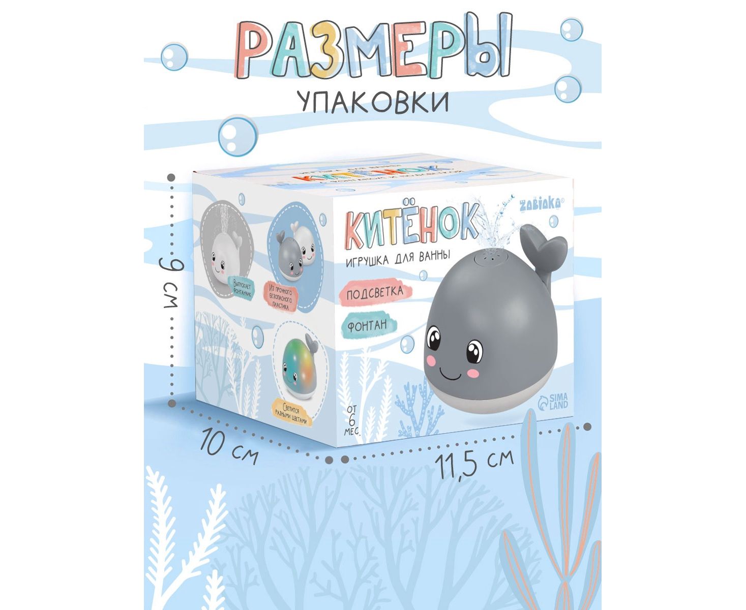 Игрушка для купания в ванной ZABIAKA «Китёнок», фонтанчик, световые эффекты, серая