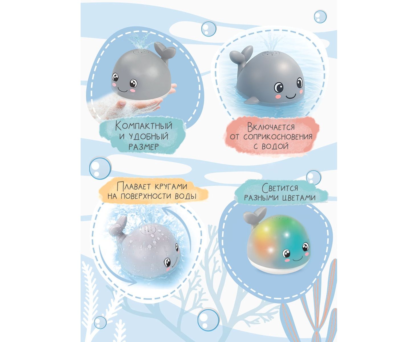 - Игрушка включается от соприкосновения с водой.