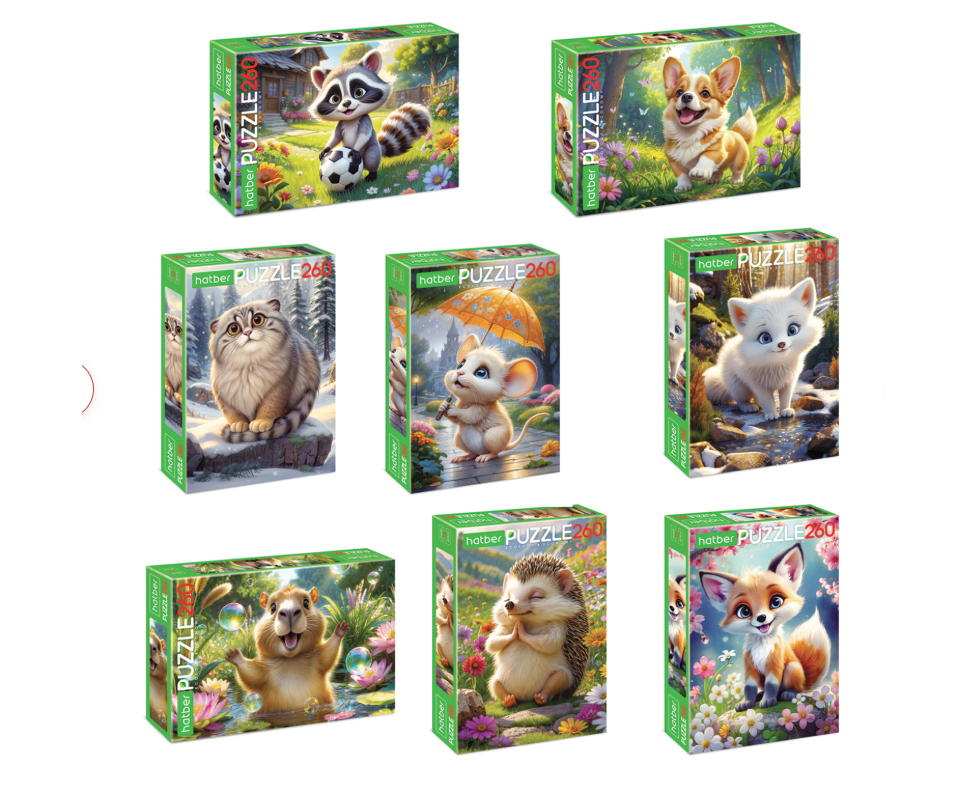 Пазл картонный "МИР ПУШИСТЫХ ЧУДЕС" 260 элементов АССОРТИ, 220х330мм, HATBER