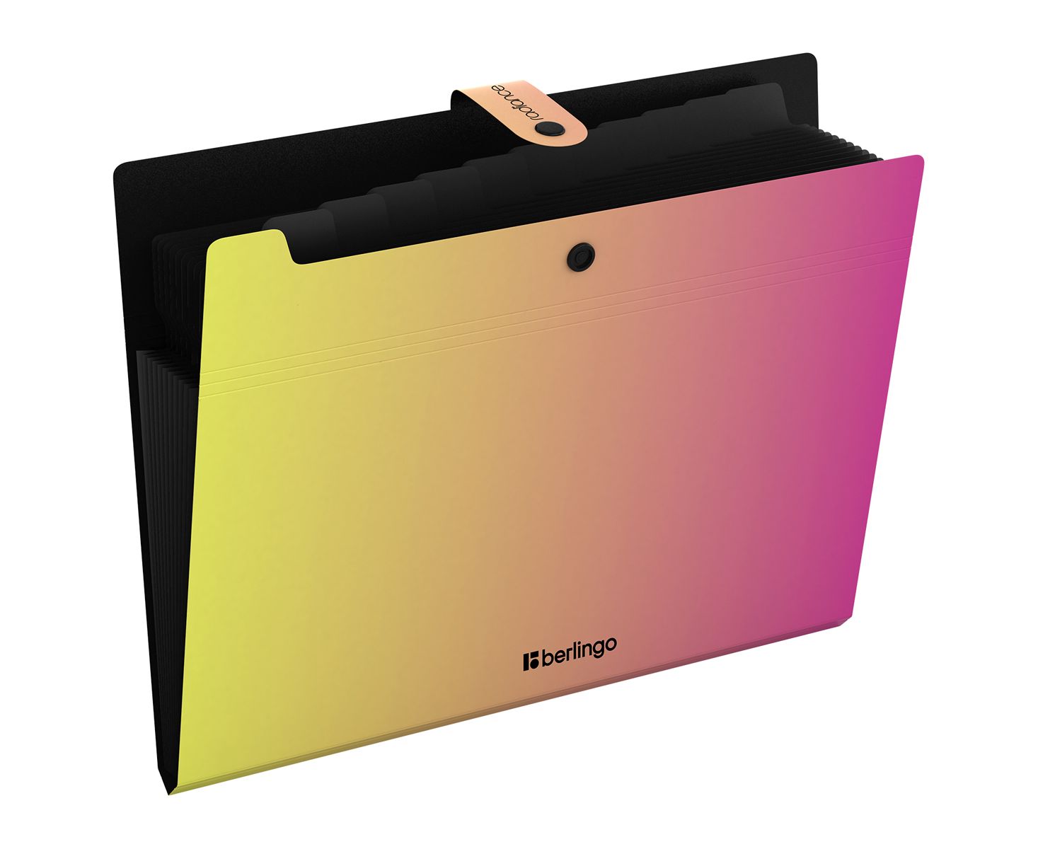 Папка 12 отделений Berlingo "Radiance", А4, 600мкм, на кнопке, желтый/розовый градиент