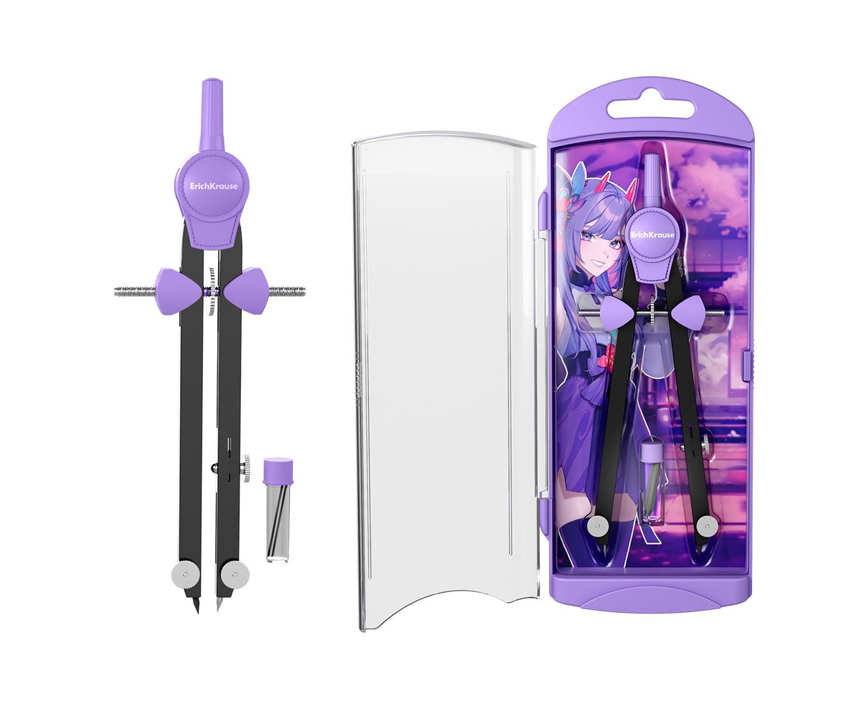 Готовальня ErichKrause Manga, (металлический циркуль и сменный грифель), пенал, фиолетовый