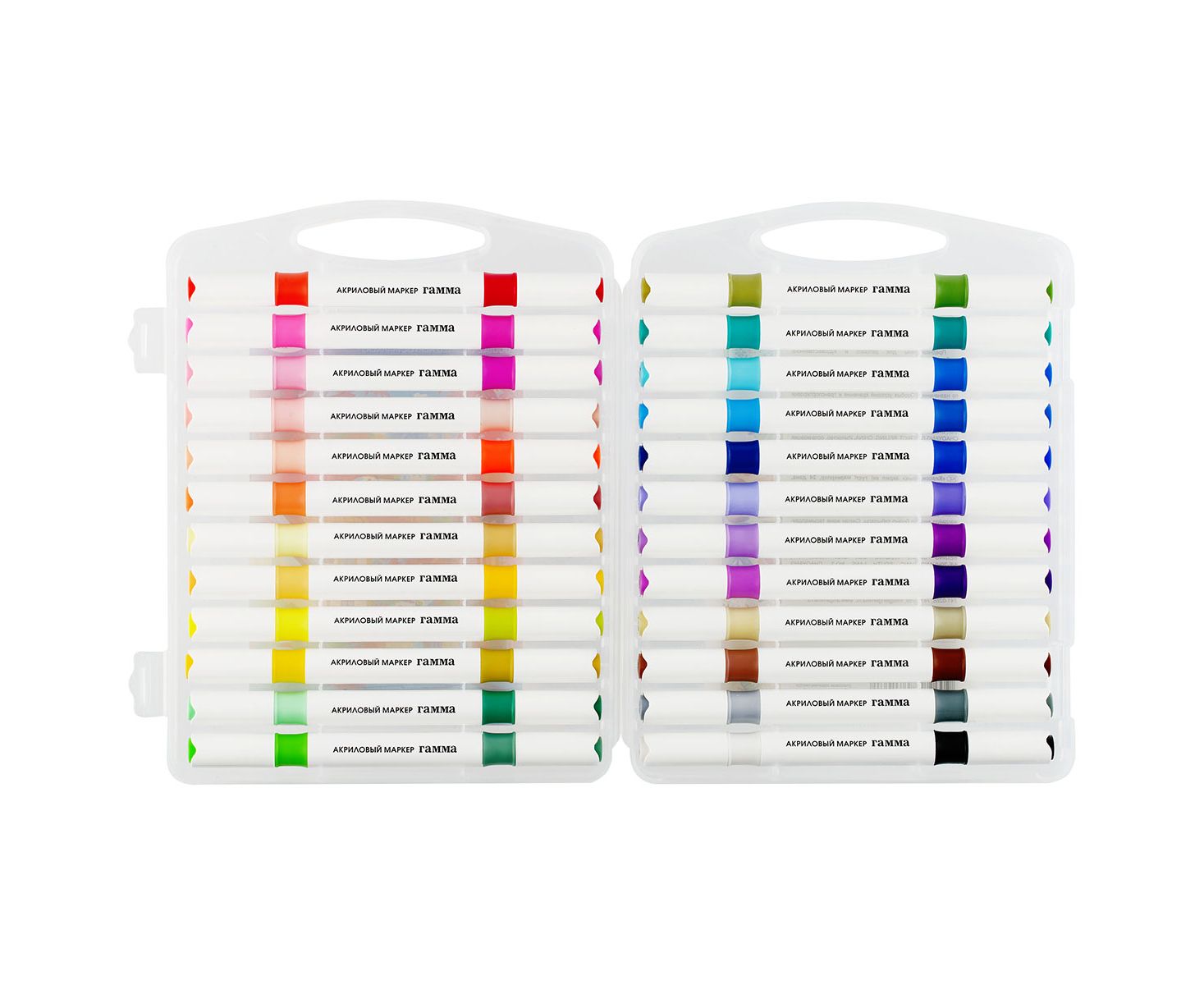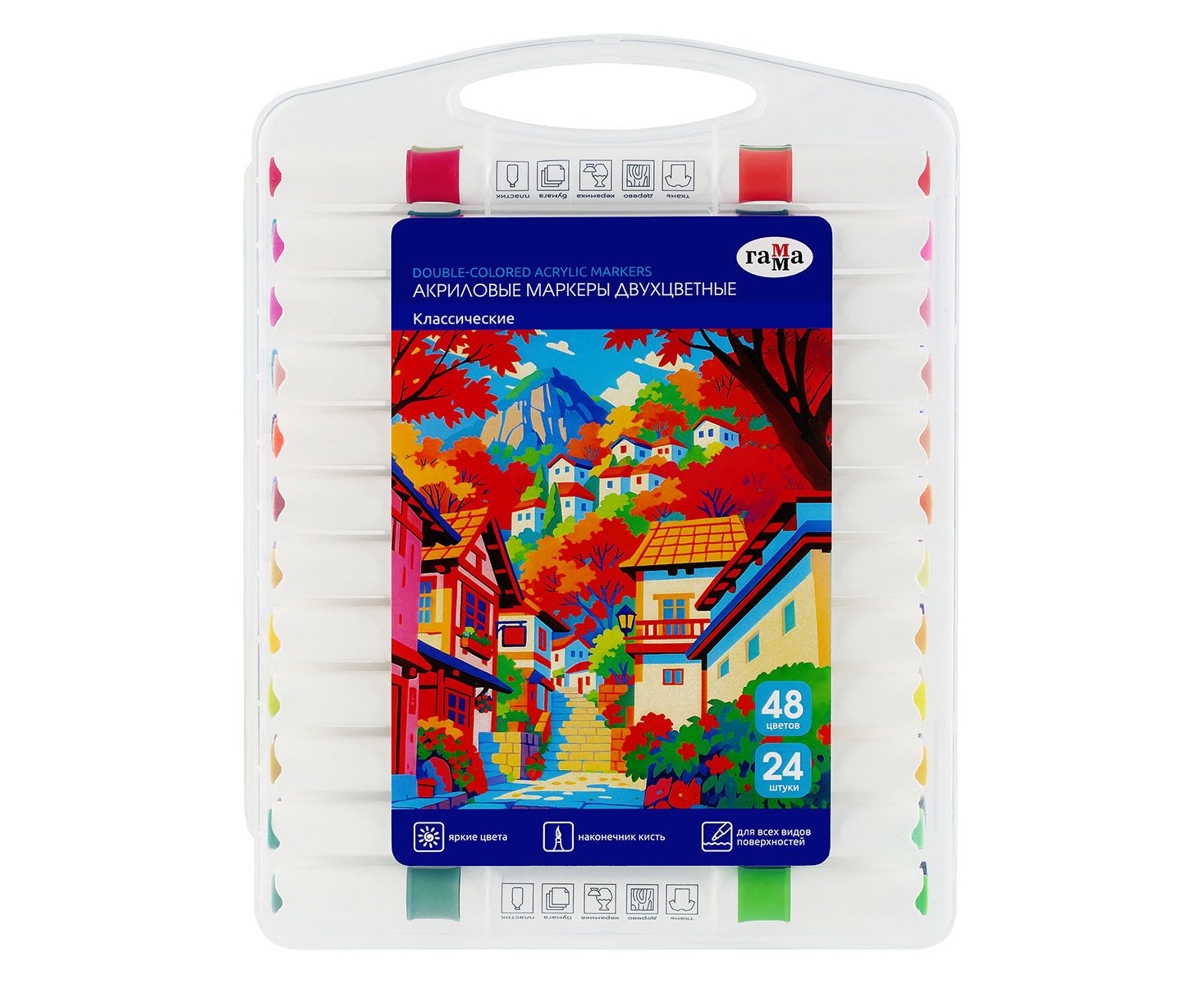 Маркеры акриловые Гамма "Классические", двухцветные, 24шт., 48 цв., пластик.бокс