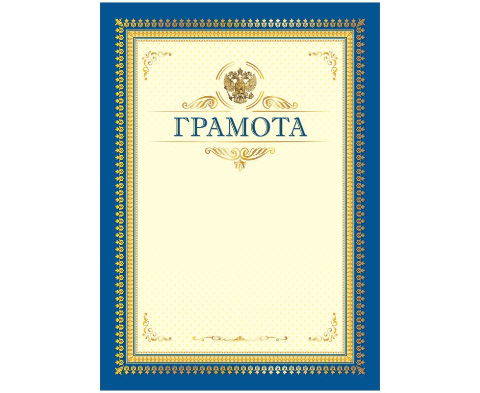 Грамота bg формата А4 – отличный выбор для выражения признательности сотрудникам, коллегам и партнерам. Бланк изготовлен из мелованного картона плотностью 200 г/м2. Грамота представлена в тематике символики РФ в синем цвете. Подходит для цветной печати. Упакованы в пакет по 20 штук.