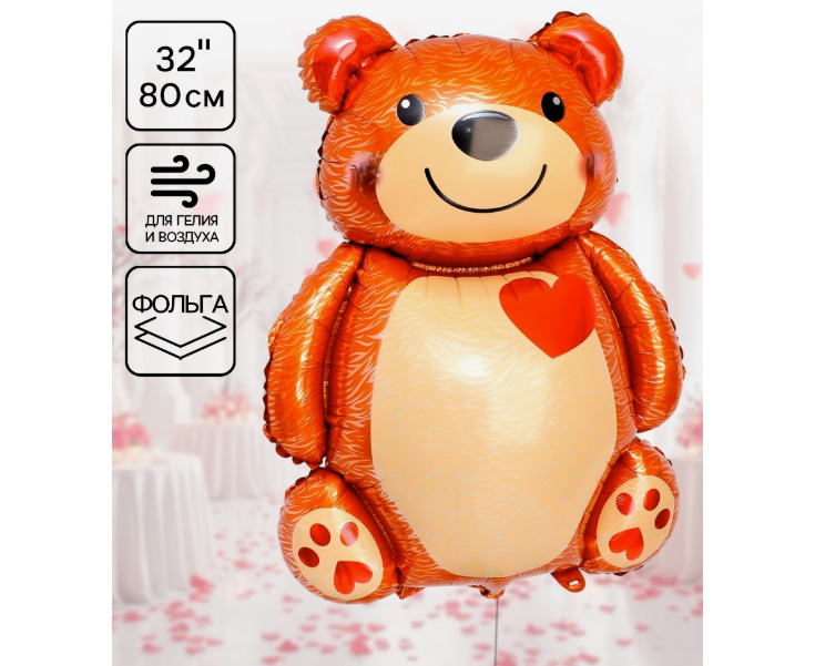 Шар «Большой мишка с сердцем» добавит яркий акцент и создаст атмосферу тепла и уюта на любом празднике. Он станет идеальным элементом для фотозоны, дополнением к подарку или украшением романтического вечера. Порадуйте близких оригинальным декором!