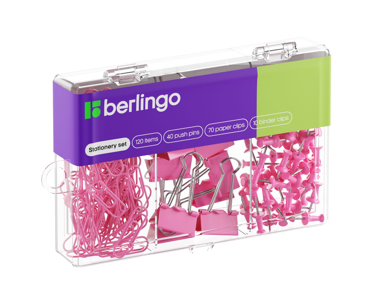Набор мелкоофисных принадлежностей Berlingo, 120 предметов, розовый, пластиковая упаковка
